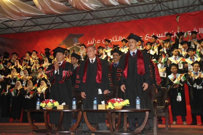مبرقاً بالتحية لروح صاحب القرار في إنشاء الجامعة الرئيس الراحل الشهيد ياسر عرفات راعي مسيرتها وصاحب القرار الجريء بإنشائها لخدمة جميع أبناء الشعب الفلسطيني أينما كانوا، ومبرقاً بالتحية أيضاً للشهداء ، والأسرى في سجون الاحتلال.