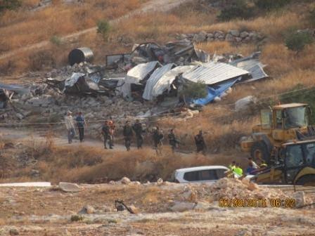 واضاف بشارات ان قوات الاحتلال ترافقها جرافات عسكرية وقوات ما يسمى بالإدارة المدنية الاسرائيلية قامت باقتحام عدة مناطق في الاغوار عند الساعة السادسة والنصف من صباح اليوم، وشرعت بعمليات الهدم لـ 4 بركسات زراعية وحيوانية اضافة الى منزل سكني من الباطون تعود ملكيتها الى خمس عائلات في قرية العقبة، كما هدمت تسع منشآت منها بركسات وخيما سكنية تعود ملكيتها الى 4 عائلات في الميتة، وفي قرية يرزا هدمت 5 منشآت منها بركسات حيوانية وخيما تعود ملكيتها لثلاث عائلات هناك .