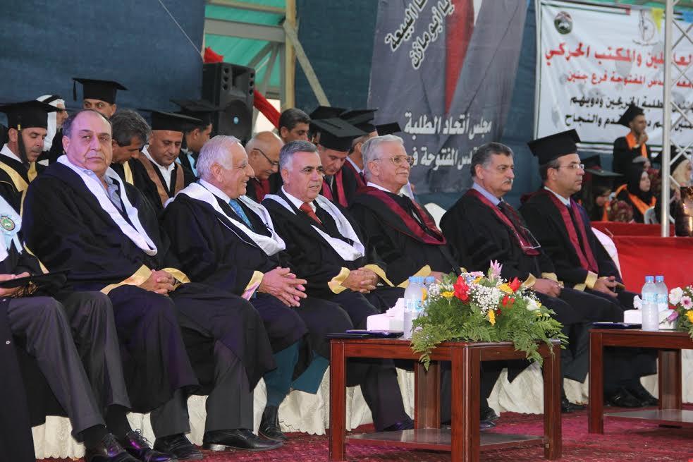 تحت رعاية رئيس دولة فلسطين محمود عباس "أبو مازن"، احتفلت جامعة القدس المفتوحة، مساء الأحد الموافق 9-8-2015م، بتخريج الفوجين السابع عشر والثامن عشر (فوج الوفاء للوطن(، وذلك في حرش الأمن الوطني في مدينة جنين، بحضور محافظ جنين اللواء إبراهيم رمضان، وممثلي المؤسسات العامة والأمنية والسيادية في المحافظة.