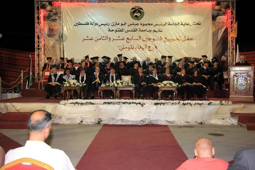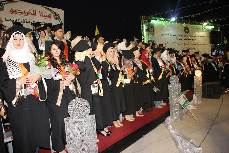 تحت رعاية فخامة رئيس دولة فلسطين محمود عباس "أبو مازن"، احتفلت جامعة القدس المفتوحة في فرعي العيزرية وأريحا، يوم الأحد الموافق 24/08/2015م، بتخريج الفوجين السابع عشر والثامن عشر "فوج الوفاء للوطن"، بحضور ممثلي المؤسسات الرسمية والشعبية والسيادية في محافظتي القدس وأريحا، وبحضور محافظ أريحا والأغوار ماجد الفتياني، ومحافظ القدس عدنان الحسيني، ومديري فرعي العيزرية د. إسراء أبو عياش، وأريحا د. راتب أبو رحمة، ومفتي القدس والديار الفلسطينية سماحة الشيخ محمد حسين، والأرشمندريت عطا الله حنا رئيس كنيسة سبسطية للروم الأرثوذوكس، وأميني سر إقليمي حركة فتح في القدس عدنان غيث، وفي أريحا جهاد أبو العسل، وأعضاء الإقليمين، وكان ذلك في مقر محافظة أريحا والأغوار.