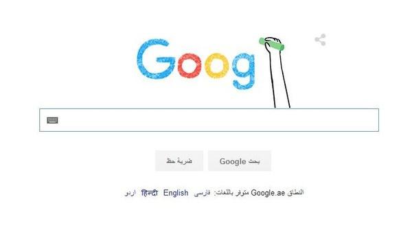 وعند زيارة محرك البحث الأشهر، يظهر الشعار القديم ثم يبدأ عرض تفاعلي، حيث تظهر يد وتقوم بمسح الشعار وكتابة الشعار الجديد ليظهر بحلّته الجديدة.