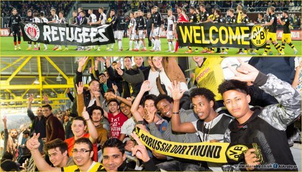 رحّب لاعبو فريق بوروسيا دورتموند الألماني باللاجئين السوريين الذين قدموا إلى بلادهم خلال الأسابيع القليلة الماضية هرباً من المعارك الدامية في سورية، جاء ذلك خلال المباراة الودية التي جمعت متصدر الدوري الألماني للكرة بنظيره "سانت باولي" مساء أمس الثلاثاء على ملعب سيغنال أيدونا بارك.