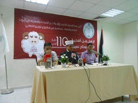 نظمت الجمعية الخيرية الاسلامية في الخليل، مؤتمرا صحفياً، اليوم الخميس، للاعلان عن انطلاق مشروع الأضاحي لهذا العام تحت شعار "اجعل نم أضحية العيد للمحتاج نصيب" والذي يستهدف الأيتام والفقراء والمحتاجين على مستوى الضفة الغربية.