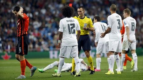 وفاز الفريق المدريدي برباعية نظيفة بعد أن حصل على ركلتي جزاء، إحداهما مثيرة للجدل، في المباراة التي لعبها شاختار بعشرة لاعبين مع انطلاق الشوط الثاني بسبب البطاقة الحمراء التي حصل عليها اللاعب تاراس ستيبانينكو.