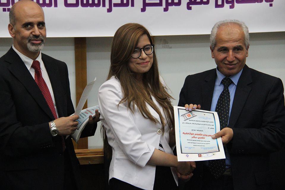 نظمت كلية الاقتصاد والعلوم الاجتماعية في جامعة النجاح الوطنية مهرجان الافلام الوثائقية الثاني عشر يوم أمس الأربعاء، في ظل مشاركة واسعة من مختلف طلبة الجامعة ومهتمين آخرين. وعُرض خلال المهرجان اثني عشرة فيلماً وثائقياً من إنتاج طلبة الإعلام في جامعة النجاح الوطنية، عالجت قضايا مختلفة مرتبطة بحقوق الانسان والمرأة.