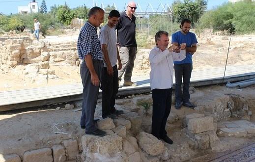 واطلع الوفد الزائر على موقع الكنيسة البيزنطية شمال قطاع غزة الذي يعود للعام 440 ميلادي ويحتوي على أهم أرضيات فسيفسائية في الشرق الأوسط, وقد تم تقديم شرح مفصل عن ما تعرض له الموقع من قصف واعتداءات متكررة من الاحتلال الاسرائيلي خلال الحروب السابقة.