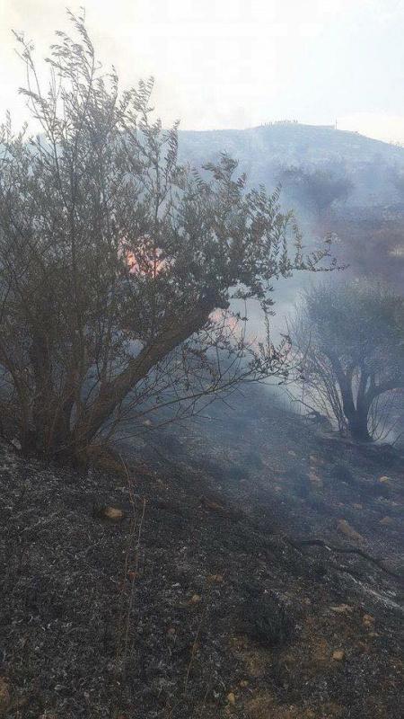 يشار الى ان هناك حريق اخر مشتعل في هذه الاثناء منعت قوات الاحتلال وصول الدفاع المدني له بسبب قربه المباشرة من مستوطنة يتسهار ولم تقدر الخسائر فيه بعد