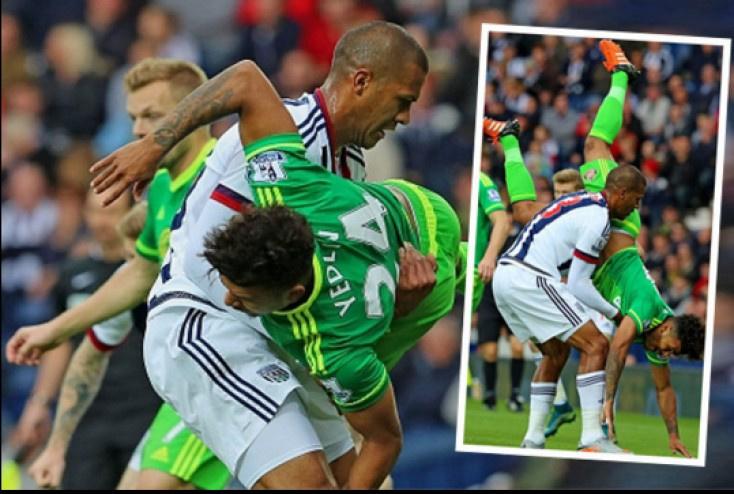فبعد احتكاك هوائي على الكرة، أوشك اللاعب دي أندري يدلين، من نادي سندرلاند، أن يسقط على رأسه، بشكل خطير جداً، لولا تدخل لاعب نادي ويست بروميتش، سالمون روندون، في لقطة جميلة ومهارية في نفس الوقت، لتفادي سقوط المدافع على أرض الملعب.