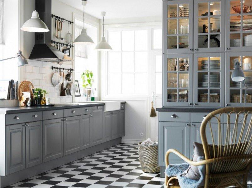 تلائم أرضية الشطرنج بـ اللونين الأبيض و الأسود المطبخ الرمادي خاصة لعشاق الأسلوب العصري في الديكور؛ حيث أنها تكسر رتابة اللون وتجعل الأرضية تنبض بالحركة.