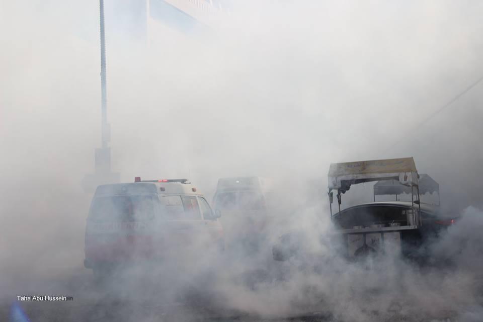 وأصيب العشرات بحالات الاختناق من الغاز المسيل للدموع، خلال مواجهات عنيفة اندلعت في منطقة رأس الجورة، بين الشبان الفلسطينيين وجيش الاحتلال الاسرائيلي، عقب المسيرة التي خرجت من مسجد الحرس لمدخل الخليل الشمالي.