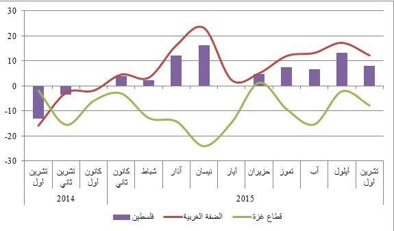 أصدرت سلطة النقد الفلسطينية نتائج "مؤشرسلطة النقد لدورة الأعمال" لشهرتشرين ثاني 2015، والتي أشارت إلى استمرار تراجع مؤشر دورة الأعمال في الاقتصاد الفلسطيني بشكل واضح للشهر الثاني على التوالي جرّاء تراجعه في كل من الضفة الغربية وقطاع غزة على حد سواء.وفي النتيجة، انخفضت قيمة المؤشر الكلي إلى نحو -16.8 نقطة خلال الشهر الحالي، مقارنة مع 8.0 نقطة في تشرين أول الماضي، ونحو -6.5 نقطة في الشهر المناظر من العام الماضي.