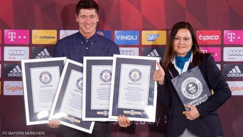 حصل البولندي روبرت ليفاندوفسكي رسميا، على شهادات بأربعة أرقام قياسية من موسوعة "غينيس"، الاثنين، في واقعة نادرة.