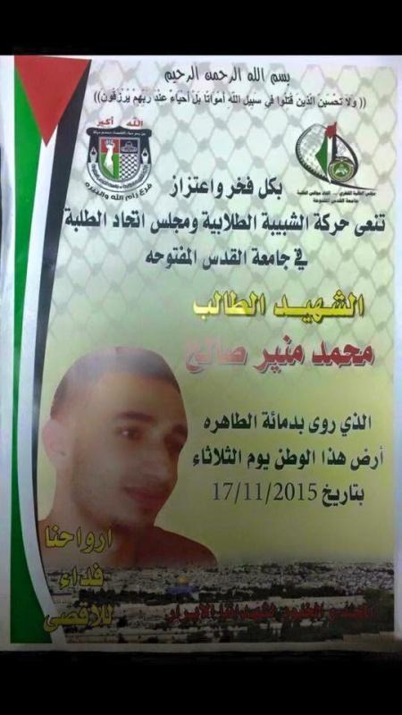 شيع أهالي قرية عارورة شمال مدينة رام الله، اليوم الأحد، جثمان الشهيد محمد منير صالح (24 عاماً) إلى مثواه الأخير في مقبرة القرية.