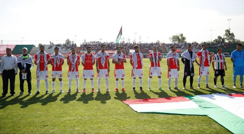 ودخل الفريقان أرض الملعب على أنغام الأهازيج الفلسطينية والسلام الوطني الفلسطيني، وتحلّقوا حول زي مكبر رسمي لنادي بالستينو الذي تم اعداده خصيصاً لهذه المناسبة بمساحة خمسين متراً مربعاً حاملاً الوان العلم الفلسطيني. وتبادل الفريقان الهدايا حيث أهدى كل لاعب من الأهلي كوفية فلسطينية لأحد زملائه من فريق بالستينو.