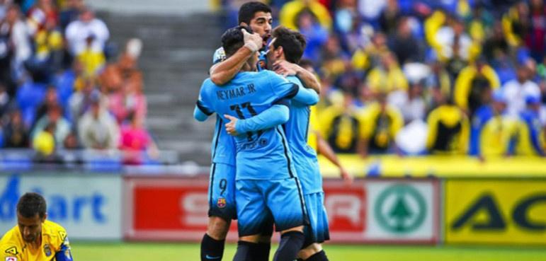 وافتتح النجم الأوروجوياني لويس سواريز التسجيل لبرشلونة في الدقيقة السادسة ، محرزا الهدف الخامس والعشرين له في الدوري هذا الموسم ، ثم أدرك البرازيلي ويليان خوسيه التعادل للاس بالماس في الدقيقة العاشرة قبل أن يتقدم برشلونة مجددا عن طريق نيمار في الدقيقة 38 .