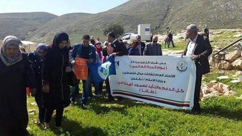 نظمت وزارة الاعلام في محافظة نابلس والاتحاد العام لنقابات عمال فلسطين -الشبيبة العمالية جولة اعلامية وزيارة لخربة طانا قرب بلدة بيت فوريك شرق نابلس، بمناسبة يوم المراة العالمي.