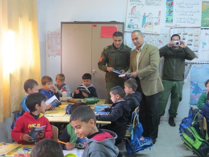 كما قاموا بتوزيع دفاتر مدرسية على الطلبة تحمل أرقام جميع مكاتب الارتباط العسكري في جميع المحافظات وشرح تعريفي عن الأنشطة التي يقوم بها الجهاز، وذلك وفقاً لتعليمات قائد الارتباط العسكري اللواء ركن جهاد جيوسي.