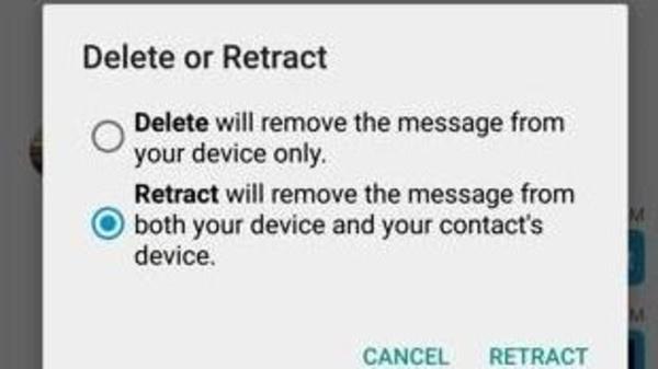 وتُعد هذه الميزة، المتوفرة لكل من المحادثات الفردية والجماعية، مفيدة بالنسبة للمستخدمين الذين قد يرسلون للشخص الخطأ أو أنهم قد يتراجعون عن كلام أرسلوه.