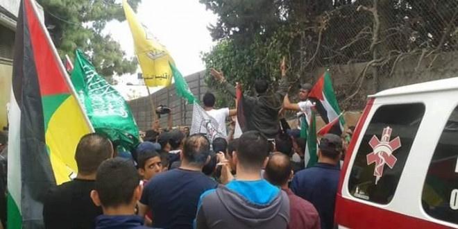 ورفع المشاركون في المسيرة العلم الوطني الفلسطيني، ورددوا الهتافات الداعية إلى الوحدة الوطنية، والسير على درب الشهداء.