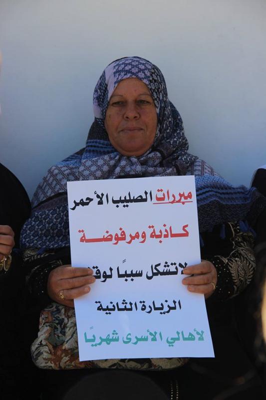 نظم نادي الأسير الفلسطيني وهيئة شؤون الأسرى والمحررين، اليوم الاثنين، وقفة احتجاجية أمام مقر الصليب الأحمر الدولي في الخليل احتجاجا على قرار تقليص عدد زيارات الأهالي لسجون الاحتلال.