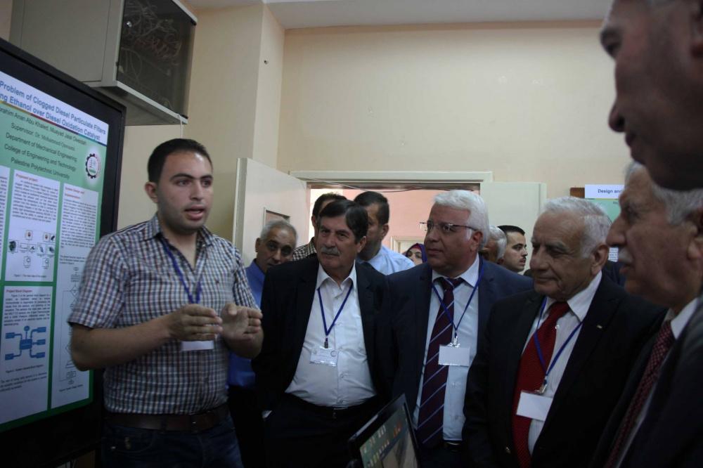 وأشار رئيس الجامعة عماد الخطيب الى رؤية الجامعة نحو جامعة ريادة وإبداع وقال: "بان هناك مشاريع ابداعية كثيرة بحاجة لإحتضان، وندعو كافة القطاعات للتواصل مع جامعة بوليتكنك فلسطين والجامعات الفلسطينية الأخرى لكي يقفوا على هذه الانجازات التي يمكن لها ان تؤثر في انتاجية وتحقيق أرباح نوعية للاقتصاد الوطني واحتضان الابداعات والمبدعين وتوفير التمويل اللازم لتطبيق ابداعات طلبتنا". مضيفاً الى تميّز الجامعة بنشاطاتها ومشاريع طلبتها التي حصد بعضها جوائز على مستوى العالم.