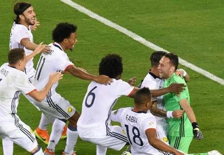 حسم المنتخب الكولومبي ورقة ترشحه إلى نصف نهائي كوبا أميركا 2016 بفوزه على نظيره البيروفي بفارق ركلات الجزاء الترجيحية صباح اليوم السبت. وتنتظر كولومبيا الفائز من مباراة المكسيك وتشيلي في المرحلة التالية.