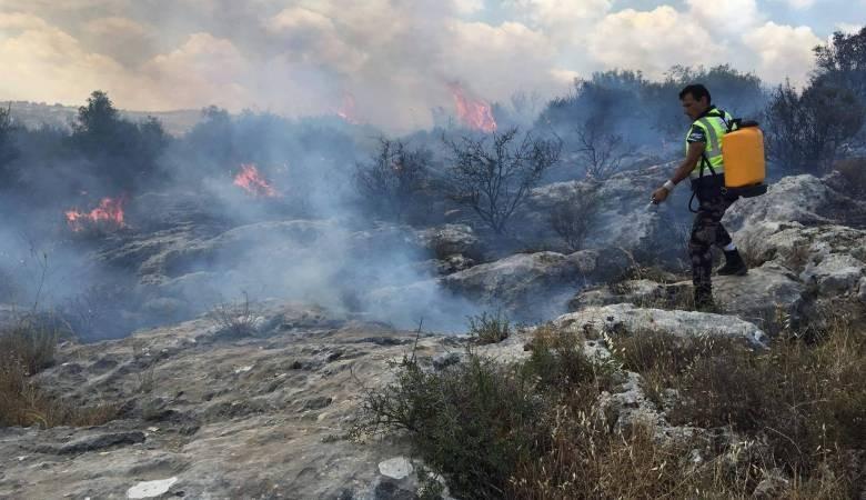 الاحتلال يتسبب في اشتعال النيران في اراضي جنوب بيت لحم