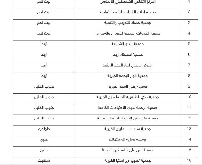 أصدرت وزارة الداخلية اليوم الأحد، قرارا بإلغاء 16 جمعية في محافظات بيت لحم، وأريحا، وجنوب الخليل، وطولكرم، وجنين، وسلفيت.