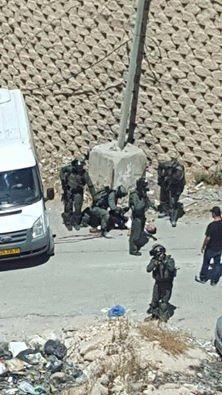 وقالت مراسلنتا بالقدس ان الشاب مصاب وملقى على الأرض وتمنع قوات الاحتلال اسعاف الهلال الاحمر من الوصول اليه.