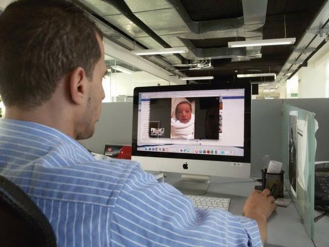لم يكن أمام الصحفي محمد أبو الريش إلا أن يشاهد طفليه التوأم لأول مرة من خلال مكالمات الفيديو عبر موقع الفيسبوك، بعد 3 أيام على ولادتهما في مستشفى المقاصد بمدينة القدس.