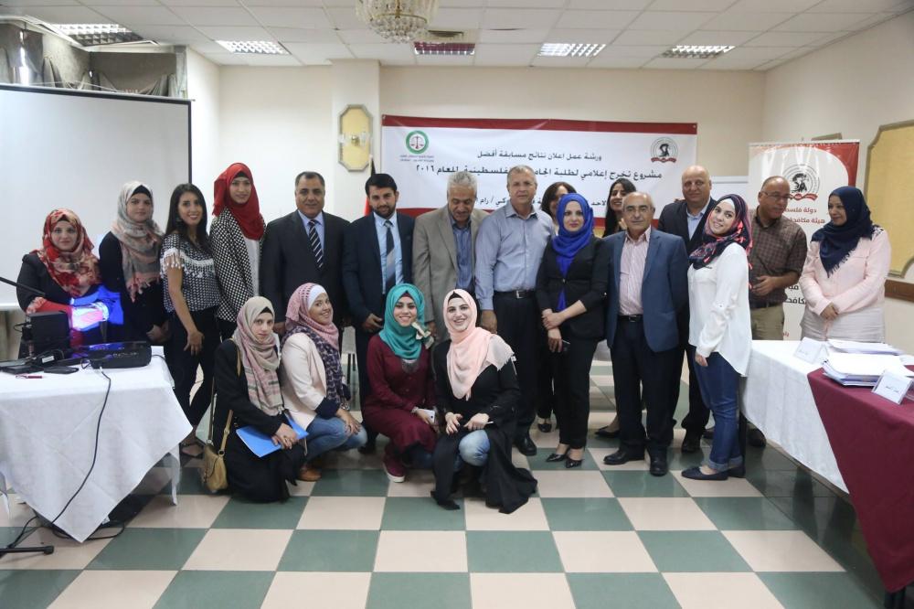 وكان في لجنة التقييم كل من الاستاذ ابراهيم ملحم رئيس تحرير جريدة القدس والاستاذ عماد الاصفر من مركز تطوير الاعلام والاستاذ خالد ابو عكر المدير التنفيذي لشبكة أمين الاعلامية والاستاذة نداء يونس من وزارة الاعلام.
