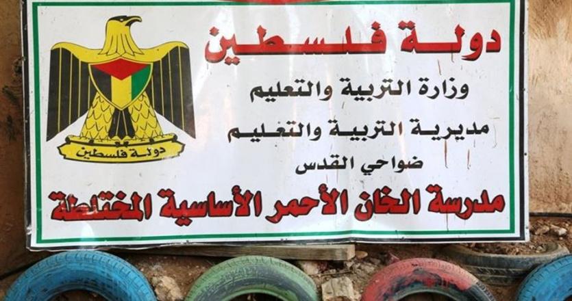 اطلقت وزارة التربية والتعليم اليوم العام الدراسي الجديد من مدرسة الخان الاحمر الاساسية المختلطة المهددة بالهدم شرق القدس.