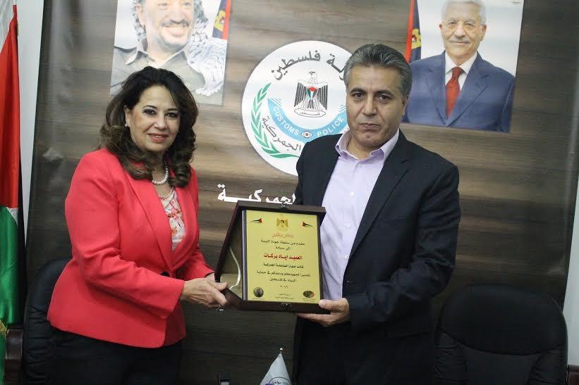 واشادت الاتيرة خلال التكريم بالدور الوطني وبالجهود التي يبذلها ضباط وافراد الجهاز في الحفاظ على مقدرات الشعب الفلسطيني وفي مكافحة عمليات التهريب المختلفة وخاصة مهربي النفايات الاسرائيلية في مختلف المحافظات.