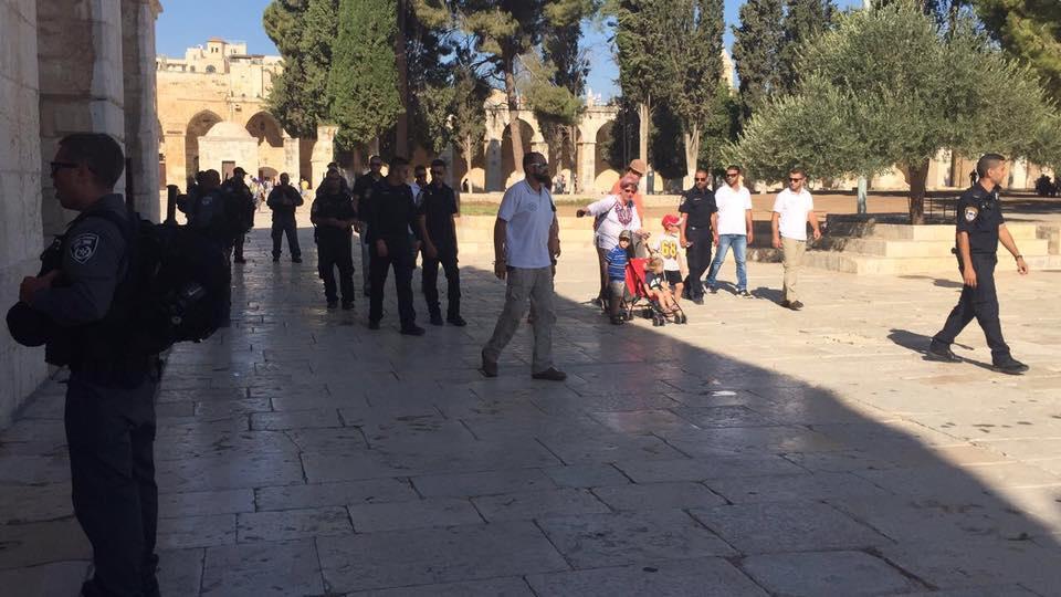 اقتحم مستوطنون صباح اليوم، وبحراسة شرطة الاحتلال، المسجد الأقصى المبارك تزامنا مع الذكرى الـ 47 لحريق المسجد الأقصى المبارك.