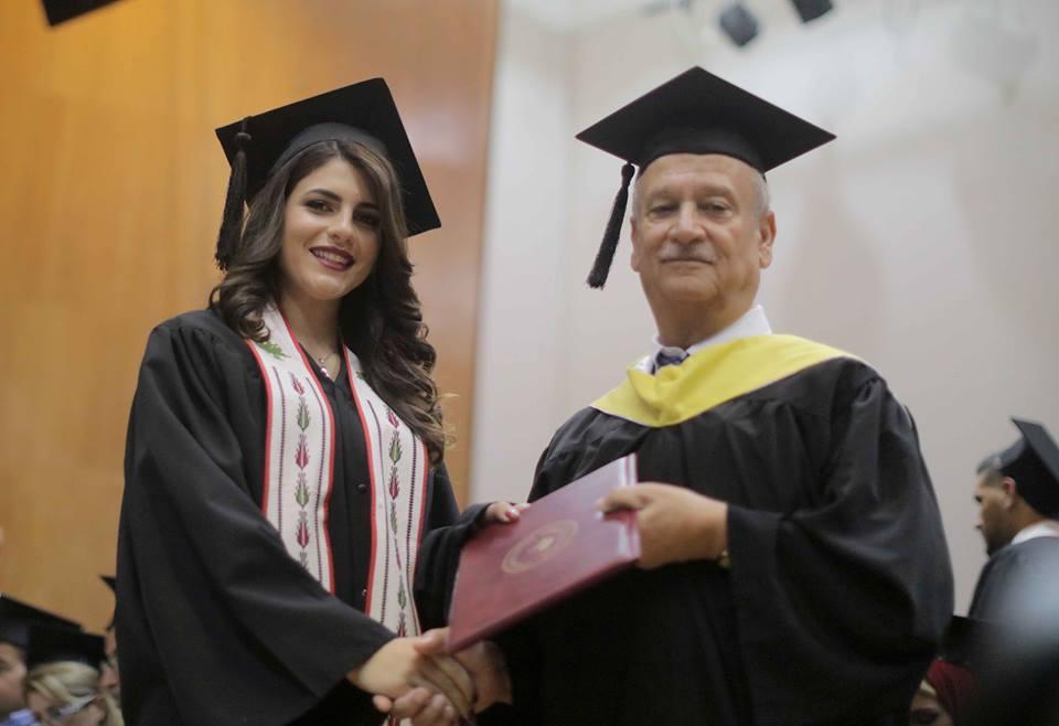 وهنأ أبو حجلة، في كلمته في الاحتفال، الخريجين، وقال: يحق لنا أن نفتخر جميعا بأن الجامعة التي كانت بدايتها ببرنامج بكالوريوس يشمل بضعة تخصصات في الآداب والعلوم، باتت تطرح اليوم عشرات التخصصات في برامج البكالوريوس والماجستير والدكتوراة، وفي ثماني كليات يضمها حرم راسخ، وحضور أكاديميّ مميز، محليًّا وعربيًّا ودوليًّا".