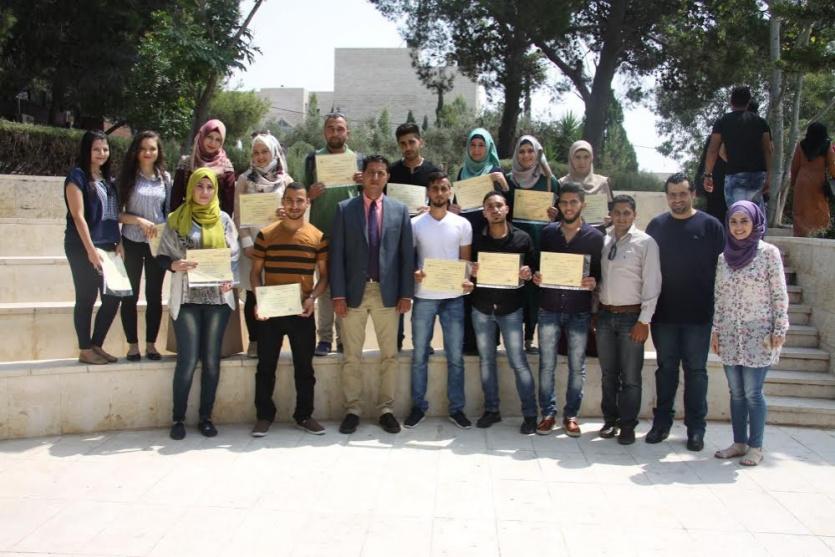 سلّم مركز سعيد خوري لتكنولوجيا المعلومات في جامعة القدس شهادات التخريج لطلبة دورة التصميم الجرافيكي والتي عقدها بواقع 160 ساعة تدريبية، بدعم من "بكدار" وبنك التنمية الإسلامي، بحضور مدير المركز أ. غسان الديك ومدربين الدورة والطلبة.