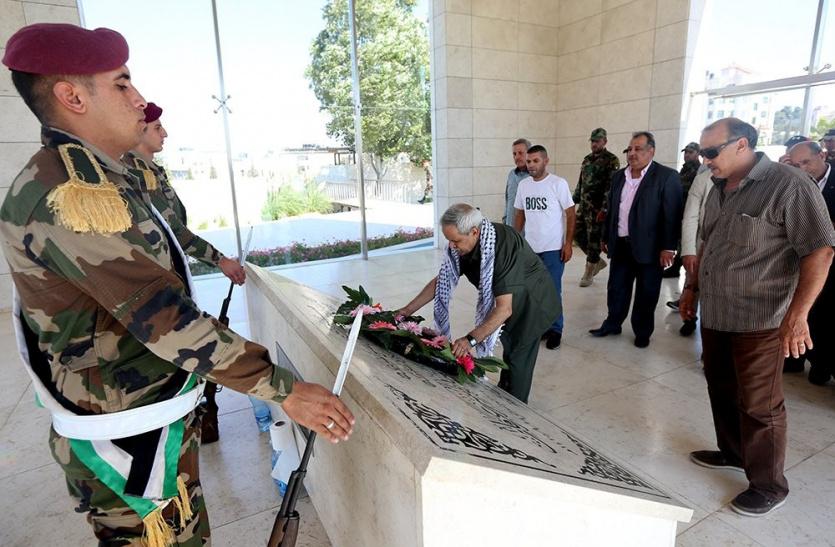 وبعد الإفراج عنه توجه اللواء سمور إلى ضريح الرئيس الراحل ياسر عرفات، ووضع إكليلا من الزهور عليه.