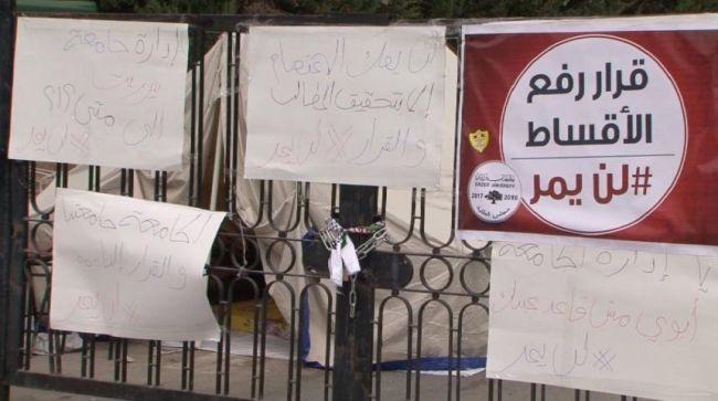 ويعتصم مجموعة من طلبة الجامعة يقدر عددهم بـ70 طالبا حسب العايش، داخل حرم الجامعة منذ مطلع الفصل الدراسي الاول، بعد إغلاقهم ابواب الجامعة ومنع دخولها، احتجاجا على قرار ادارتها برفع الاقساط على الطلبة القدامى.