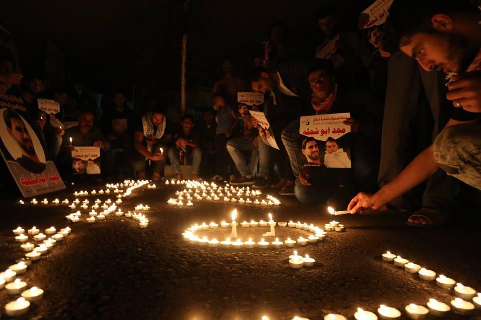 أضاء العشرات من المواطنين مساء اليوم، الشموع، تضامنا مع الأسير مجد أبو شملة، المضرب عن الطعام لليوم الـ20 على التوالي والأسرى المضربين، وذلك لدى مشاركتهم في وقفة تضامنية، نظمتها الحملة الوطنية والشعبية ، في بلدة يعبد جنوب غرب جنين .