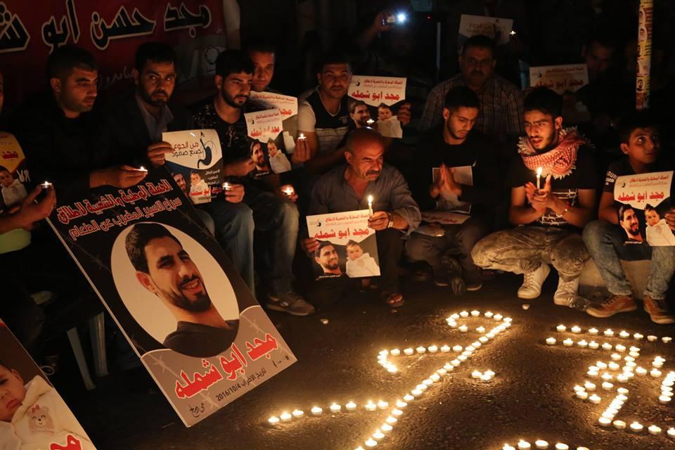 جنين: إضاءة شموع تضامنا مع الأسير أبو شملة والأسرى المضربين