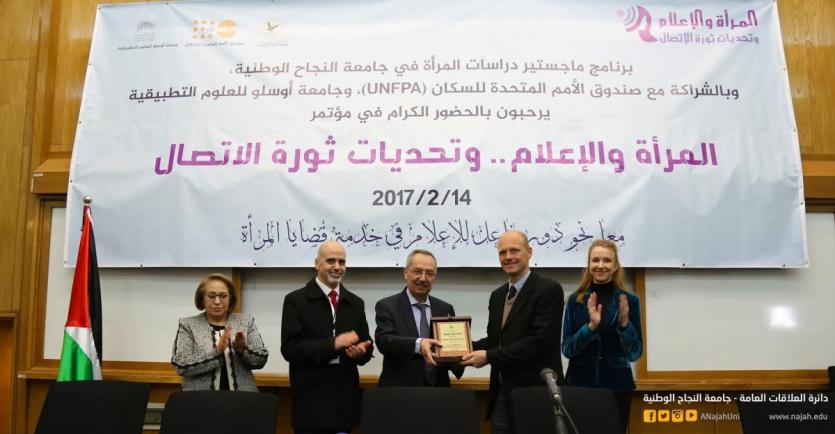 دعا عدد من الباحثين والإعلاميين والأكاديميين إلى ضرورة النهوض بدور الإعلام في دعم قضايا المرأة واستثمار طاقاتها في تحقيق الأهداف الوطنية والمجتمعية. جاء ذلك خلال المؤتمر الذي عقده برنامج ماجستير دراسات المرأة في جامعة النجاح الوطنية بالشراكة مع صندوق الأمم المتحدة للسكان وجامعة أوسلو للعلوم التطبيقية وبالتعاون مع لجان العمل الصحي.