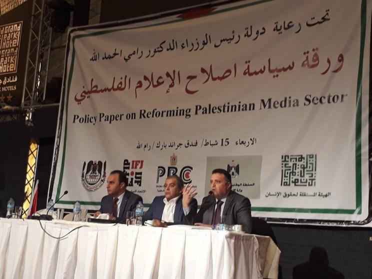 وفي كلمته ممثلا عن رئيس الوزراء رامي الحمد الله، قال وزير العدل علي أبو دياك، إن إصلاح الإعلام الفلسطيني يقوم على محاور عدة منها توفير البيئة القانونية الملائمة لمأسسة وإصلاح وتطوير الإعلام، بما يضمن صيانة حرية الإعلام والرأي والتعبير والتأليف والنشر والتوزيع، كذلك تعديل قانون المطبوعات والنشر، واستحداث قانون هيئة الإذاعة والتلفزيون، وقانون المجلس الأعلى للإعلام، وقانون حق الحصول على المعلومات.