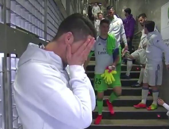 وبعد عودة رونالدو لصف فريقه، قام زميله المهاجم ألبارو موراتا بإخباره أن عدسات الكاميرات قد التقطت المزحة التي قالها لحارس الببغاوات -35 عاماً- توًّا، فأبدى رونالدو ردة فعل طريفة.