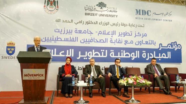 وقد عقد المؤتمر تحت رعاية رئيس الوزراء رامي الحمد الله، وبالشراكة مع نقابة الصحافيين الفلسطينيين، وبحضور عشرات الإعلاميين والخبراء: