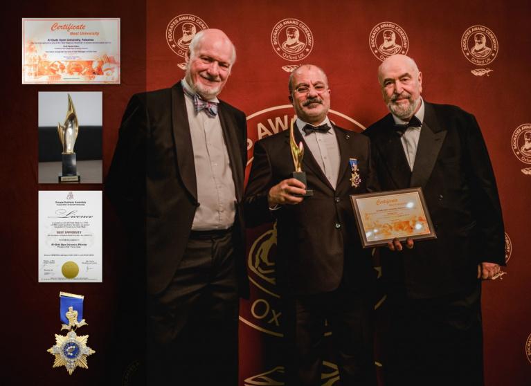 واستلم الجائزة نيابة عن جامعة القدس المفتوحة د. م. عماد الهودلي مساعد رئيس جامعة القدس المفتوحة لشؤون العلاقات الدولية، من لجنة الجائزة بالتعاون مع الجمعية الأوروبية للأعمال ومقرها مدينة أكسفورد.