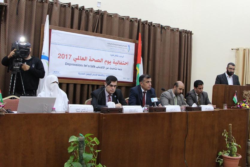 احتفل قسم المهن الصحية بالكلية الجامعية للعلوم التطبيقية بإحياء يوم الصحة العالمي 2017، والذي جاء هذا العام تحت شعار: دعنا نتحدث عن الاكتئاب، حيث انطلقت الاحتفالية بحضور كل من الدكتور علي الخطيب النائب الأكاديمي، الدكتور محمود ضاهر رئيس مكتب منظمة الصحة العالمية بغزة، الدكتور يحيى خضر مدير عام الصحة النفسية بوزارة الصحة، السيدة لبنى شلح رئيس القسم، الدكتور معتصم صلاح رئيس قسم التمريض وعلوم الصحة، ولفيف من مدرسي القسم وممثلين عن المؤسسات الصحية الرسمية والخاصة والأهلية والعشرات من طلبة القسم.