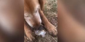 فيديو مؤثر .. كلب يرعى مجموعة أرانب فقدت والدتها