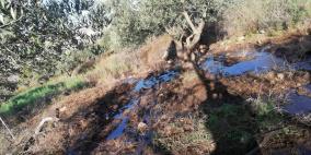 مستوطنون يغرقون اراضي المواطنين شرق نابلس بالمياه العادمة
