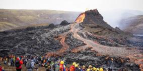 بركان أيسلندا يجذب الزوار لرؤية الحمم عن قرب