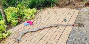 صورة: حالة نادرة.. ثعبان ضخم يبتلع ثعبانا آخر أكبر حجما حيا!